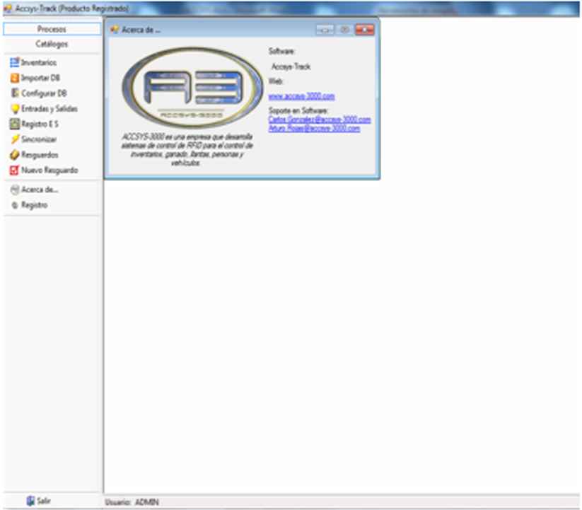bienes que le fueron entregados, y es asociado con imagen y fotografía, Requerimientos para instalar ACCSYS-TRACK.